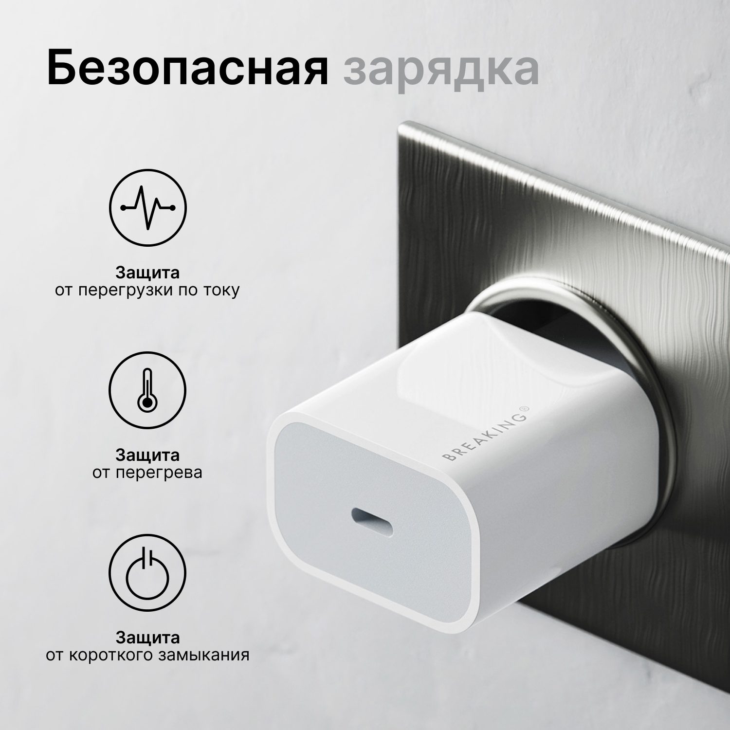 Быстрая зарядка для iPhone, iPad Breaking WC04 (USB-C)