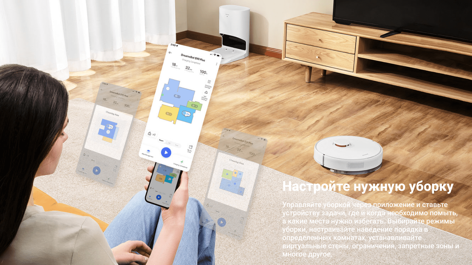 Просто произнесите фразу, чтобы запустить, поставить на паузу или остановить работу вашего пылесоса — насладитесь полной автоматизацией уборки с самого начала! D10 Plus поддерживает голосовой помощник Alexa и Google Assistant, которые знают наизусть все команды.