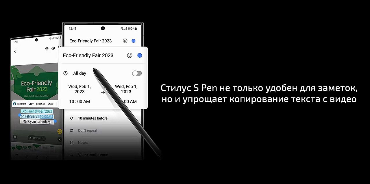 Стилус S-Pen, знакомый многим приверженцам смартфонов Galaxy ещё по линейке Note, позволяет не только делать заметки и наброски, но и быстро выделять и копировать информацию, преобразовывая её в текст. Он имеет 4096 степеней силы нажатия и работает на основе технологий WACOM – знаменитого производителя профессиональных графических паншетов. А самое главное – он всегда под рукой.