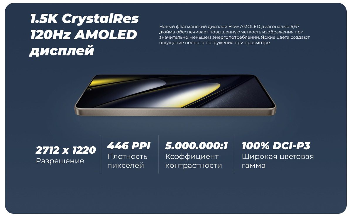 6.67-дюймовый AMOLED-дисплей CrystalRes с тройным сертификатом защиты зрения