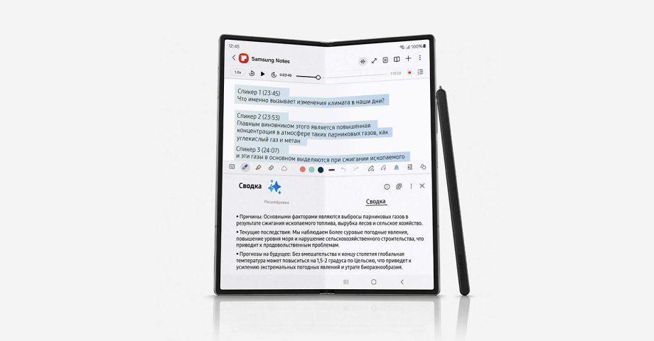 Электронное перо S Pen — идеальный компаньон для Galaxy Z Fold6. На большом и складном экране по настоящему удобно делать рукописные заметки, рисовать или редактировать документы.