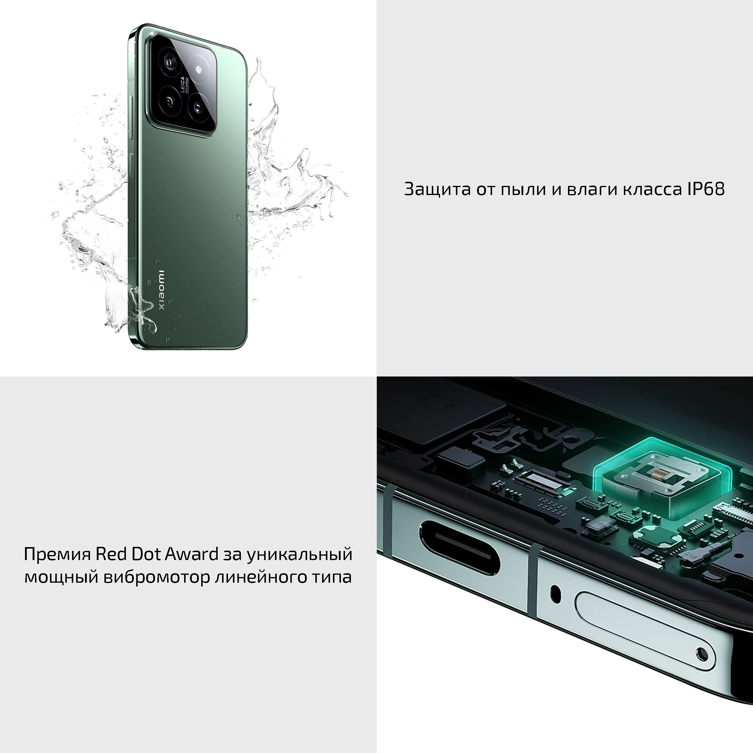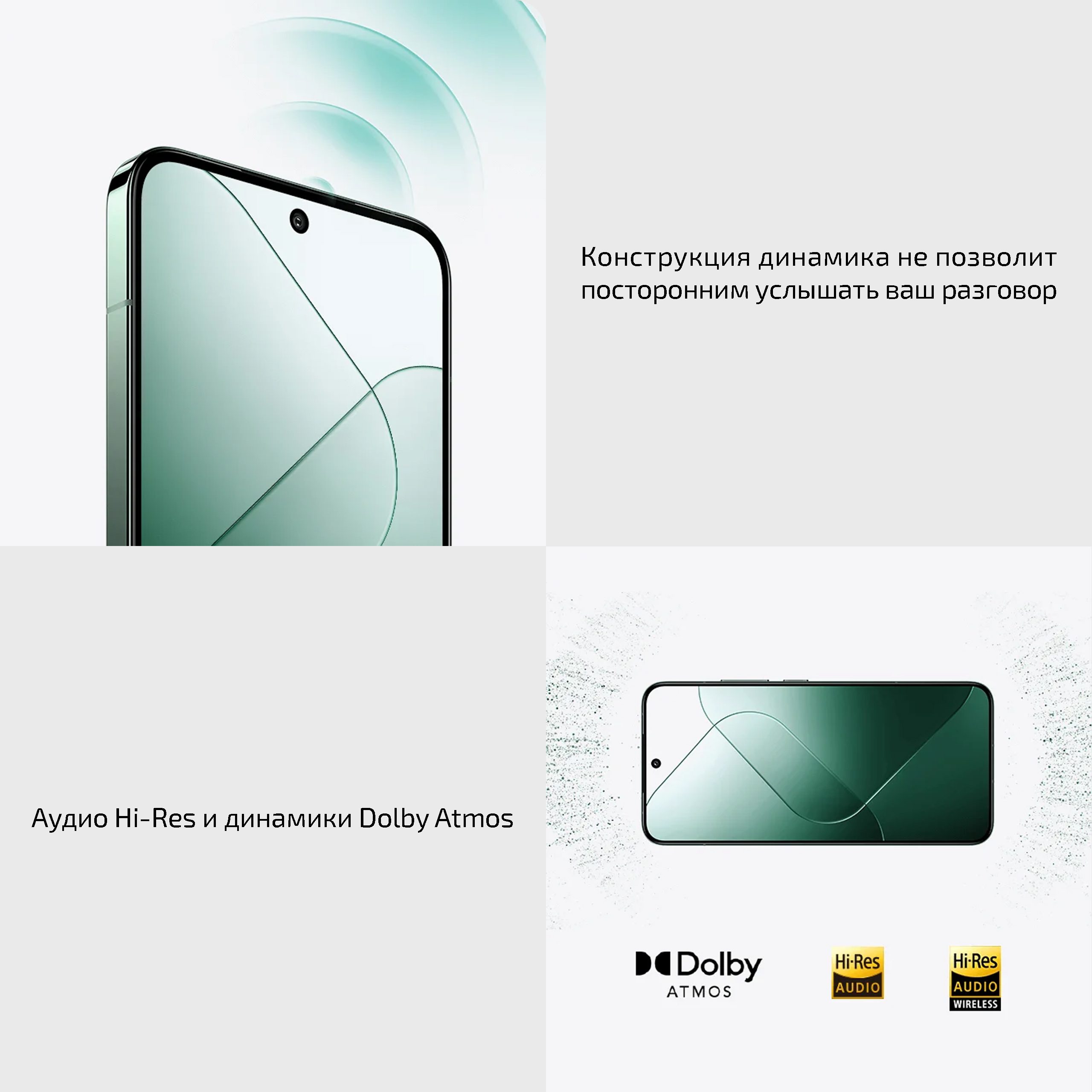 Погрузитесь в эпицентр событий с объёмным звуком. Смартфон не только получил поддержку объёмного звука и способен стать отличным плеером, но и оснащается качественными динамиками. А видео, записанное на Xiaomi 14 также порадует объёмным звуком за счёт системы из четырёх микрофонов, записывающих всё вокруг.
