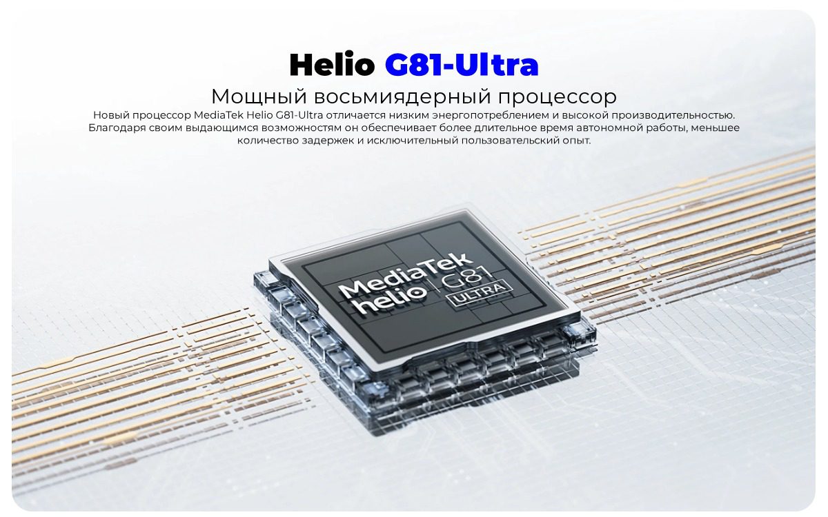 Телефон Redmi 14C оснащен процессором Helio G81-Ultra, который обеспечивает достаточную мощность для многозадачности и базовых игр. В сочетании с быстрой оперативной памятью он обеспечивает быстродействие телефона даже при выполнении более сложных задач.
